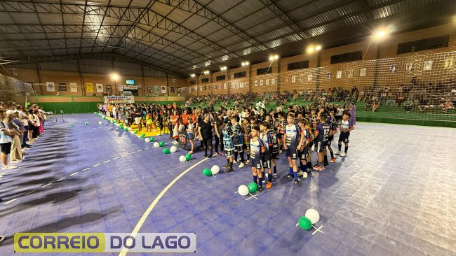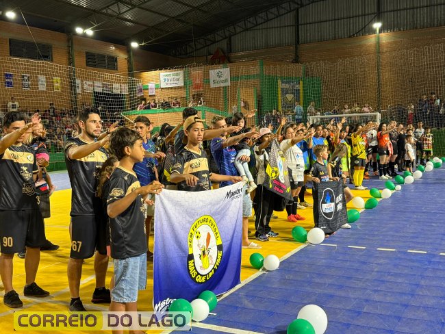 A solenidade aconteceu no Ginásio de Esportes Coração Amigo e reuniu autoridades locais, atletas do município e da região, representantes da Polícia Militar e um grande público.