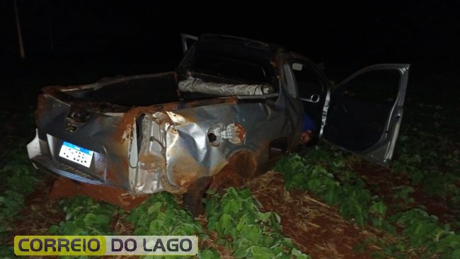 Segundo as informações, o condutor de um veículo GM Montana acabou perdendo o controle do automóvel, saindo para fora da pista, vindo a capotar a pickup, que parou em meio a uma área de plantio.