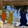 O trabalho artesanal, desenvolvido durante as atividades do serviço, inclui casquinhas de ovos, coelhinhos e desenhos temáticos, que passaram a compor a decoração da praça a partir da manhã de segunda-feira (30).