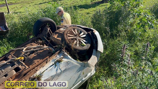 Mais um acidente foi registrado no perigoso trecho do KM 46 da rodovia PR-488, entre Santa Helena e Diamante do Oeste. Um Honda Fit seguia no sentido Santa Helena a Diamante do Oeste quando, ao chegar à curva do referido ponto, o condutor perdeu o controle do veículo e acabou saindo da pista, parando em uma propriedade rural às margens da rodovia.
