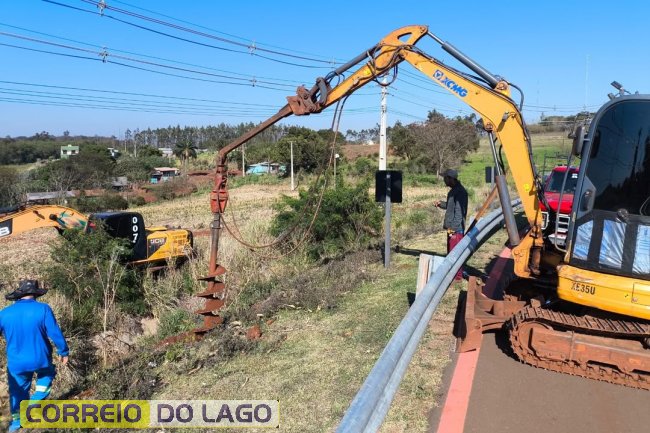 Nesta primeira etapa, estão sendo feitas as perfurações para a concretagem de 18 postes. Após essa fase, serão instaladas luminárias de LED, que proporcionam maior eficiência energética e menor consumo de eletricidade, aumentando a segurança para usuários da ciclovia e motoristas que trafegam pelo trecho.