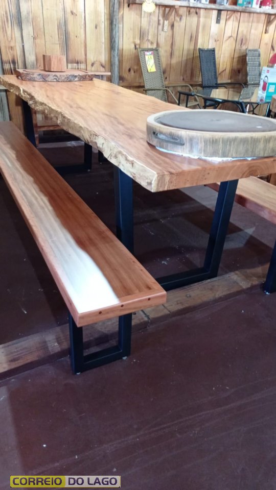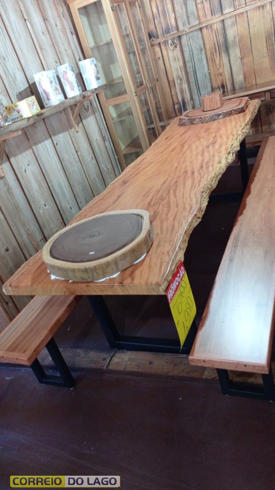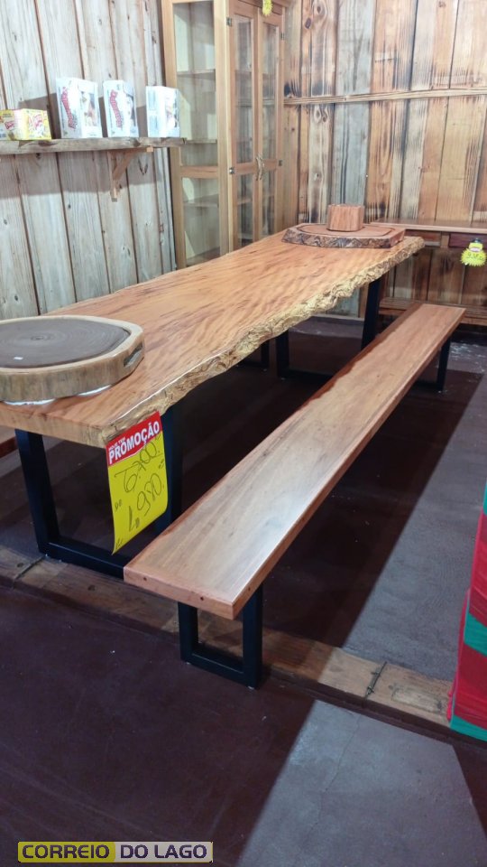 Mesas de madeira maciça são destaque em promoção da Brick Brack, em Santa Helena
