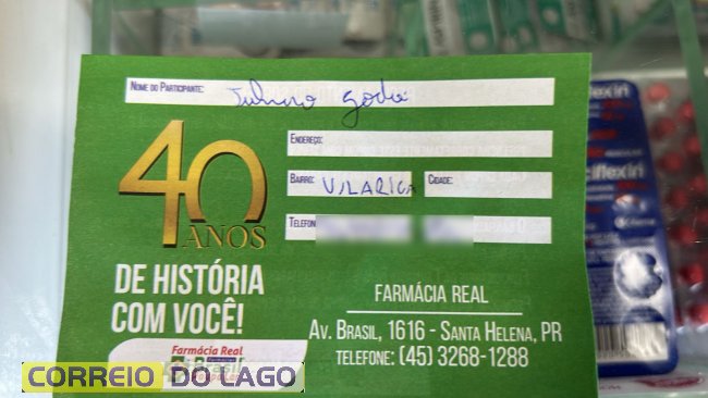 Às 17h desta sexta-feira (31), a Farmácia Real Rede Brasil Poupa Lar, realizou o sorteio da promoção de aniversário de 41 anos da loja em Santa Helena.