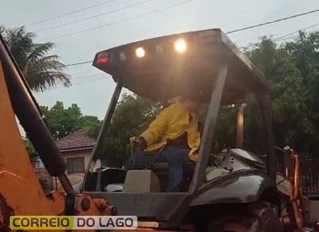 Mesmo sob chuva, a equipe do Departamento de Abastecimento realizou o religamento, solucionando o problema e restabelecendo o abastecimento para os moradores do loteamento.