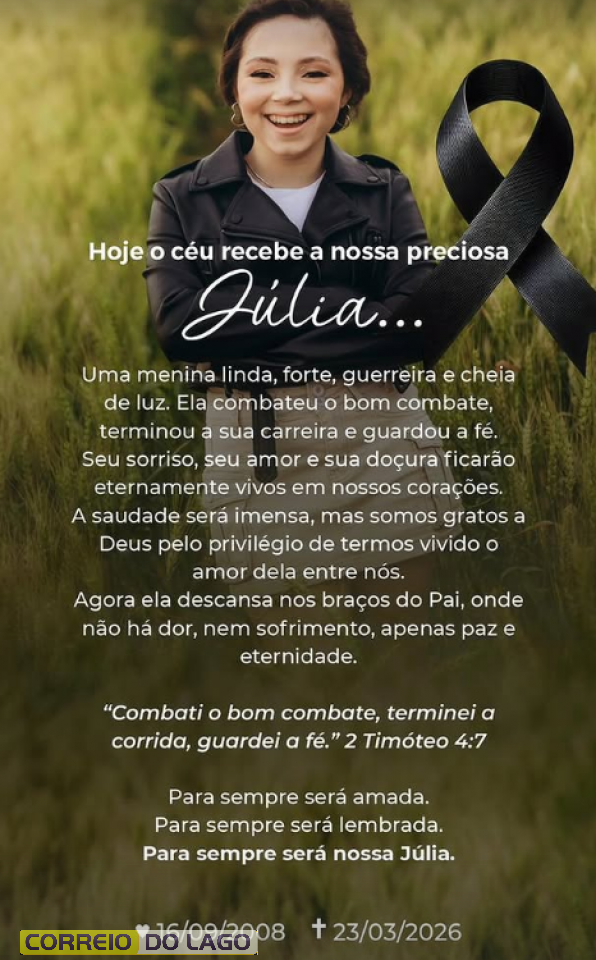 Morreu nesta segunda-feira (23) a adolescente Júlia Motta de 17 anos que enfrentava um câncer raro em Cascavel. A menina havia mobilizado a comunidade em uma grande campanha em busca de tratamento.