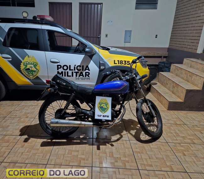 Uma motocicleta de origem estrangeira foi apreendida na noite deste domingo (15), após uma abordagem da Polícia Militar do Paraná, em Missal, no oeste do estado.
