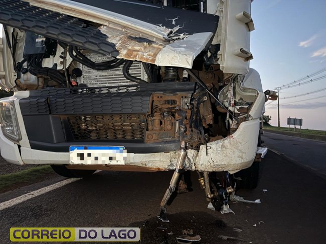 Com o impacto, o motociclista morreu ainda no local. O caminhão parou a vários metros do ponto da colisão.