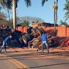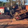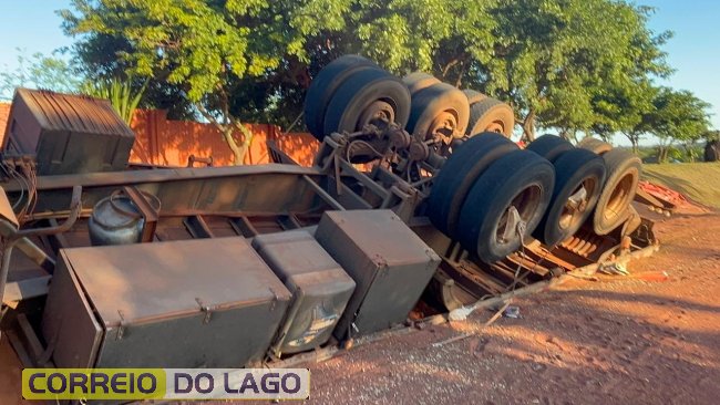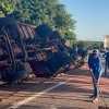 Motorista perde controle e tomba carreta na PR-317, em Santa Helena