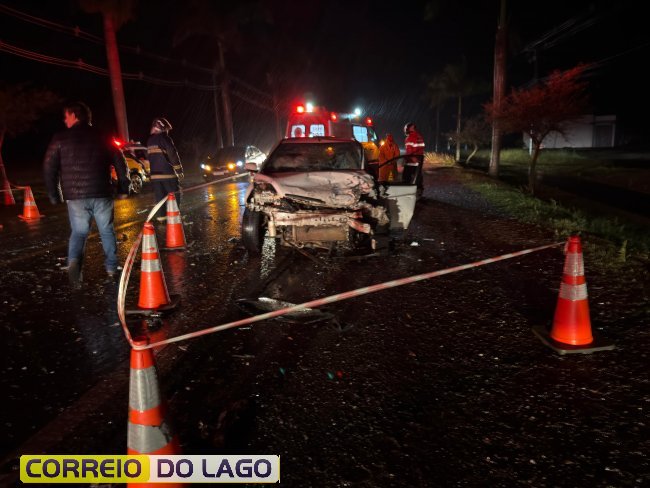 A colisão envolveu um Fiat Strada e um Ford Focus. Com o impacto, uma mulher de 56 anos, que estava no Focus, sofreu hemorragia interna, foi entubada e transferida em estado grave para Toledo, onde permanece internada.