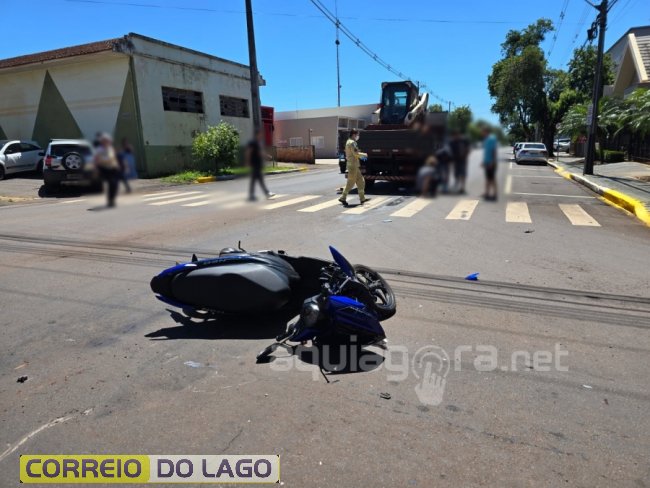 Um gravíssimo acidente de trânsito foi registrado por volta das 13h50 no centro de Marechal Cândido Rondon. Uma jovem de 28 anos sofreu ferimentos graves, a colisão envolveu uma motocicleta Yamaha Neo e um caminhão