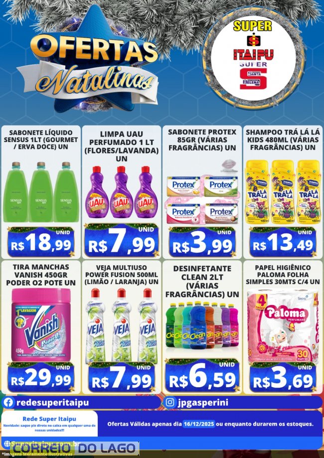 O Super Itaipu e Super Santa Helena trazem uma seleção especial de ofertas de Natal válidas somente nesta terça-feira (16) ou enquanto durarem os estoques.