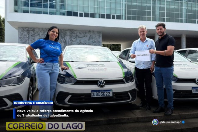 Nesta segunda-feira (23), em Curitiba, representantes do poder Executivo e Legislativo, acompanhados da gerente da Agência do Trabalhador, participaram da entrega de um novo veículo destinado à unidade de Itaipulândia. O investimento foi viabilizado pela Secretaria de Estado do Trabalho, Qualificação e Renda, com o objetivo de fortalecer a estrutura de atendimento no município.