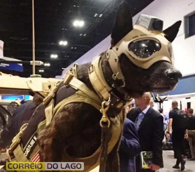 Um Pastor Holandês apareceu usando um capacete diferente na Operation Forces Conference (SOFIC), em Tampa, na Flórida.