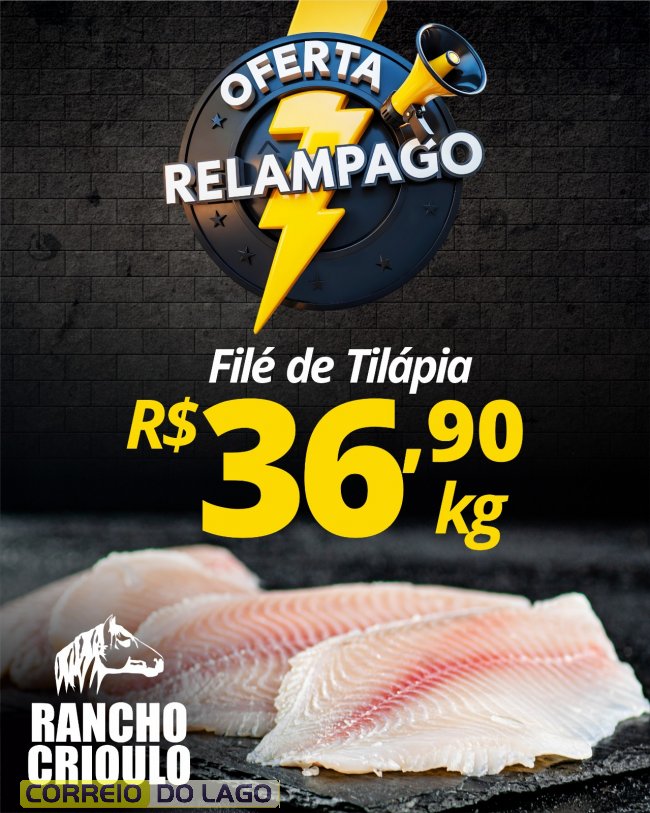O Rancho Crioulo lançou uma oferta relâmpago com filé de tilápia a R$ 36,90 o quilo.