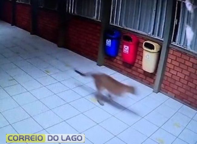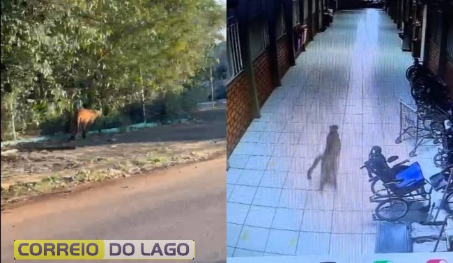 O animal, de aproximadamente 40 quilos, foi visto por câmeras de segurança caminhando pelo Bairro Tropical e chegou a entrar no saguão do refeitório da instituição, assustando o caseiro que chegava para trabalhar.