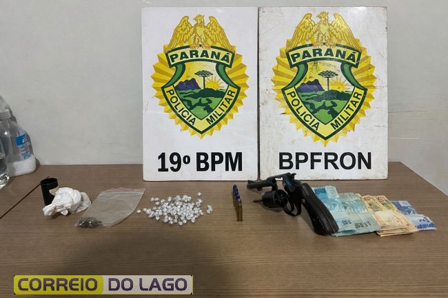Durante as diligências, os policiais ainda localizaram uma arma de fogo calibre .38, acompanhada de seis munições do mesmo calibre, sem registro legal. O Canil do BPFRon foi acionado para apoio nas buscas, porém nenhum outro ilícito foi encontrado.