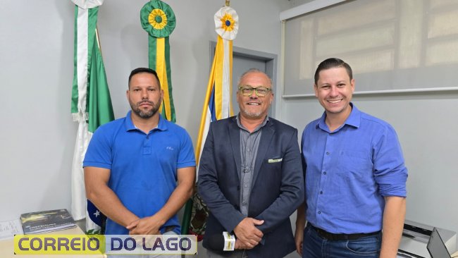 Da esquerda para direita, vereador José Carlos Schuarb (Baiano); Edu Ditz, diretor do Correio do Lago, e o Prefeito de Ouro Verde do Oeste, Lucian Aluísio Dierings (Gugu).