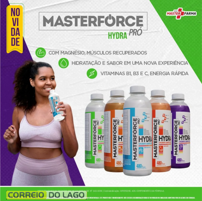 Para adultos, o Masterforce Hydra Pró traz magnésio e vitaminas B1, B3 e C, oferecendo hidratação, recuperação muscular e energia rápida. Quem deseja cuidar dos cabelos encontra, no Masterforce Pró Hair, nutrientes que fortalecem os fios, reduzem a queda e promovem brilho e vitalidade.