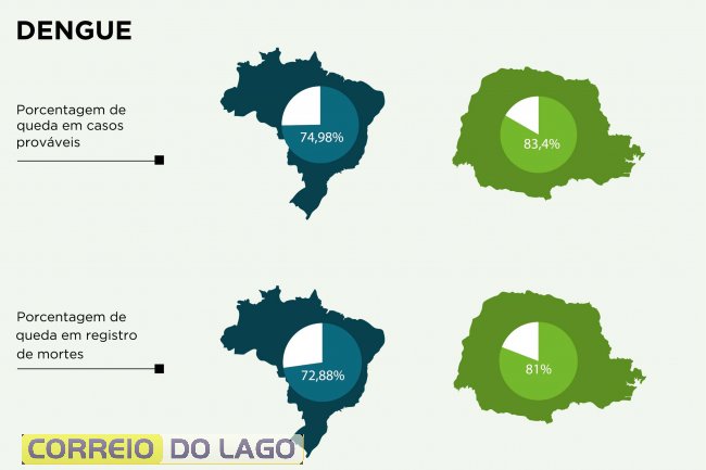 No Brasil, o Ministério da Saúde (MS) usa como base números de "casos prováveis" de dengue. De janeiro a outubro, a queda de casos prováveis foi 74,98%, em relação ao mesmo período de 2024. No Paraná, seguindo o indicador do MS, o panorama é de 83,4% de queda nos casos prováveis. No registro de mortes, o Brasil apresentou uma queda de 72,88%, enquanto no Paraná foi de 81%.