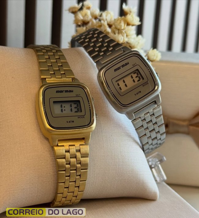 A tendência retrô também aparece com força nos modelos da Mormaii. Com design vintage e detalhes delicados, os relógios seguem em alta e reforçam um estilo marcante, ideal para quem busca autenticidade no dia a dia.
