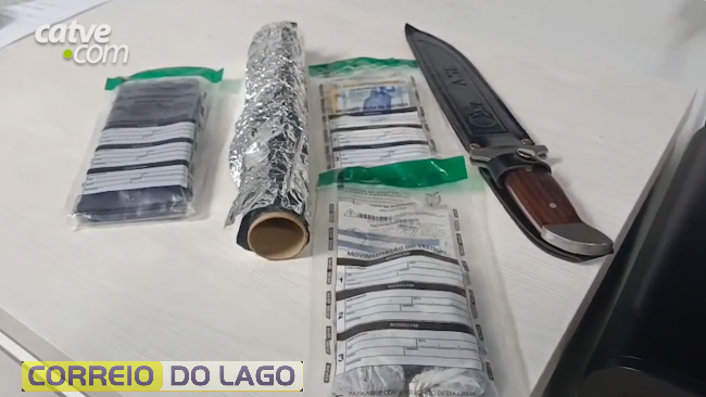 Em determinado momento da perseguição, um dos indivíduos sacou um objeto de grandes proporções da cintura, o que levou a equipe policial a efetuar um disparo de arma de fogo para resguardar a própria integridade. O objeto foi lançado ao solo, sendo identificado como uma faca com bainha preta e lâmina de aproximadamente 25 centímetros.
