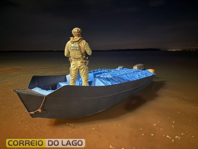 Em uma ação conjunta na madrugada desta terça-feira (31), policiais federais e militares apreenderam uma embarcação carregada com aproximadamente 60 mil maços de cigarros contrabandeados. A investida ocorreu na área rural de São Miguel do Iguaçu, às margens do Lago de Itaipu.
