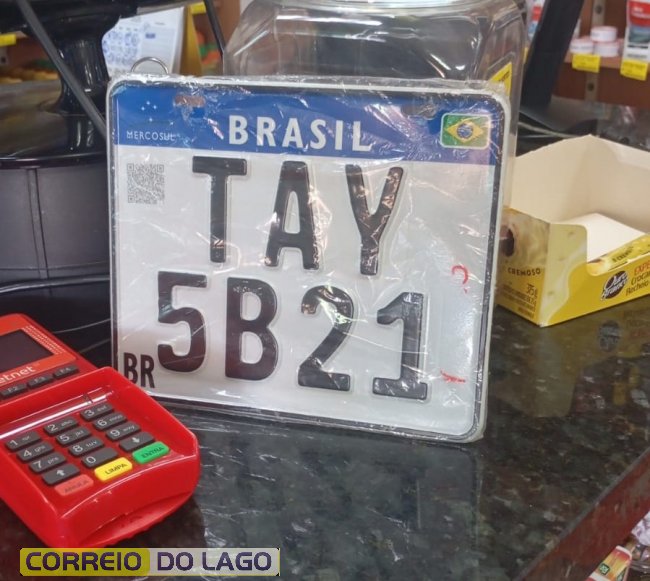 Uma placa de moto padrão Mercosul, nova e plastificada, foi encontrada na rodovia PR-495, entre o distrito de São Clemente e a cidade de Entre Rios do Oeste.
