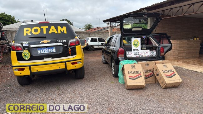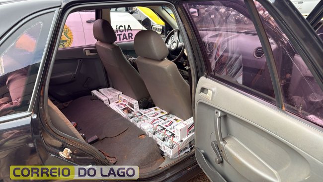 Durante a vistoria, foram encontradas diversas caixas de cigarros contrabandeados da marca Palermo, distribuídas no porta-malas, no assoalho e sobre o banco traseiro. O condutor informou que transportava cerca de 500 pacotes.