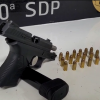 Durante as buscas na residência, os agentes encontraram uma pistola calibre .380, municiada com 18 cartuchos intactos.