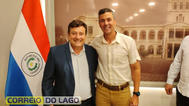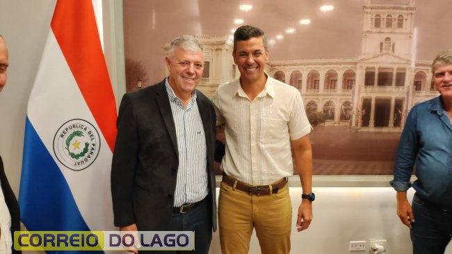 Em audiência oficial na residência da presidência em Assunção, o presidente do Paraguai, Santiago Peña, recebeu uma comitiva liderada pelo prefeito de Santa Helena, Dinho Maraskin, além de lideranças de Mbaracayú e Minga Porã.
