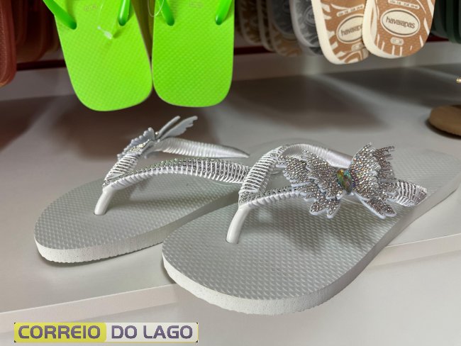 Entre os destaques estão os modelos Farm Rio, com cores vibrantes e detalhes que chamam atenção, além das versões com glitter, delicadas e modernas. As estampas e acabamentos trazem aquele toque que muitas vezes completa o look de forma natural, sem esforço, apenas com estilo.