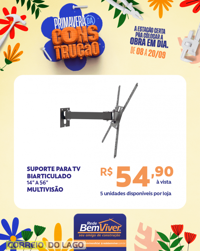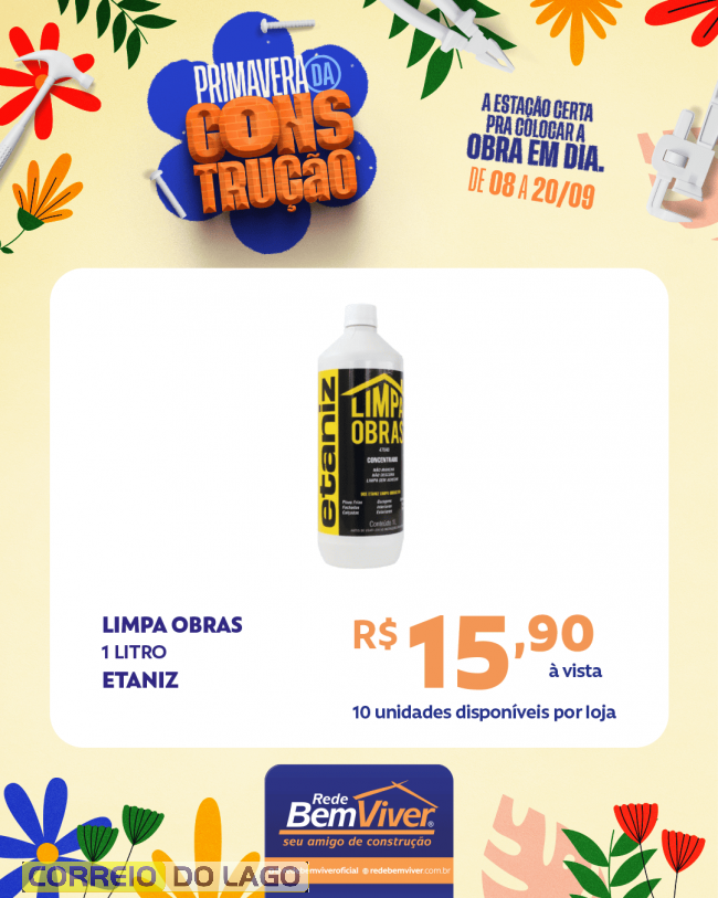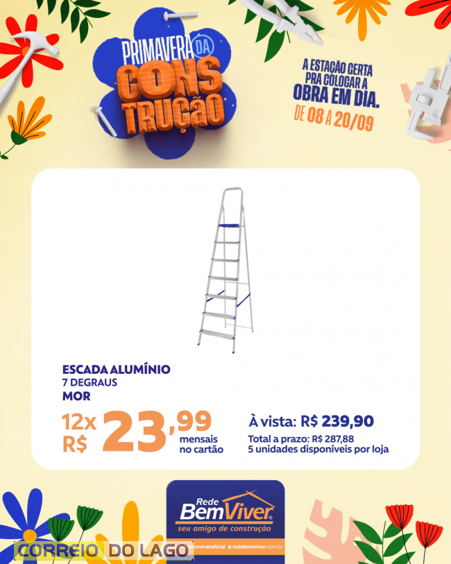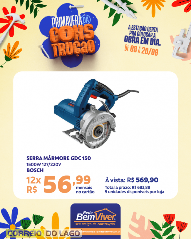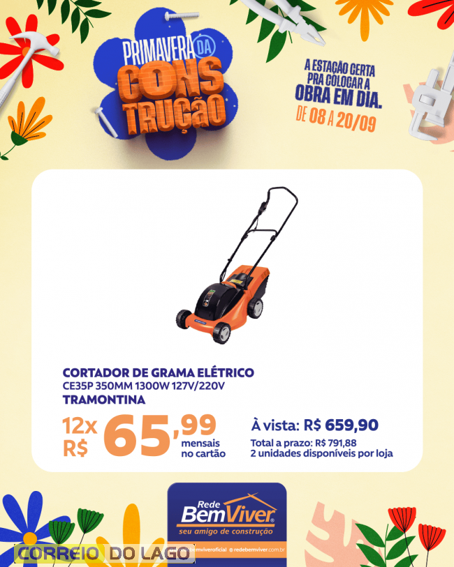 Todos os produtos e equipamentos estão disponíveis para consulta na loja, com atenção para itens com estoque restrito. A Primavera da Construção acontece no Ponto Forte em Santa Helena.