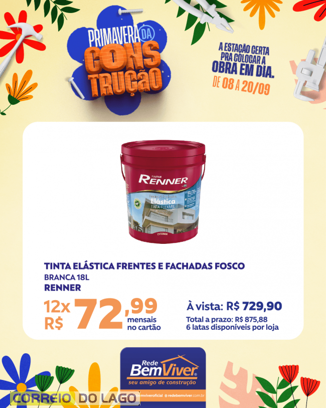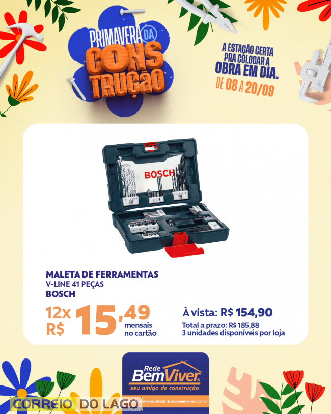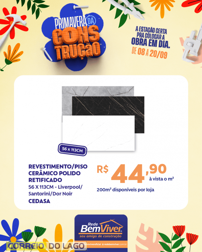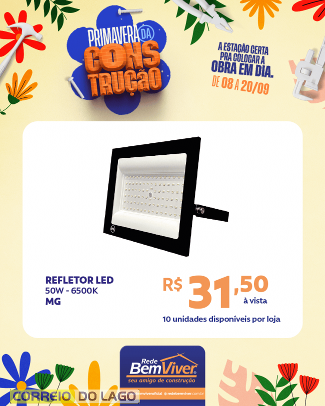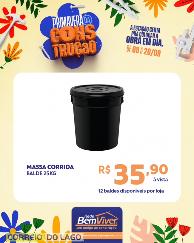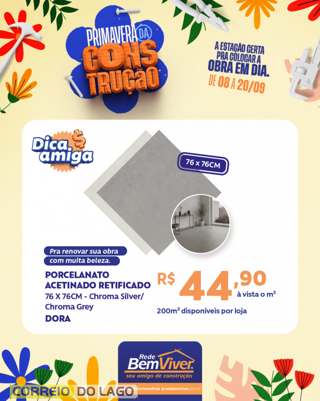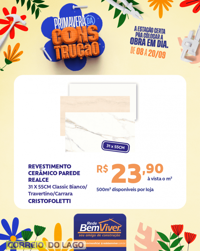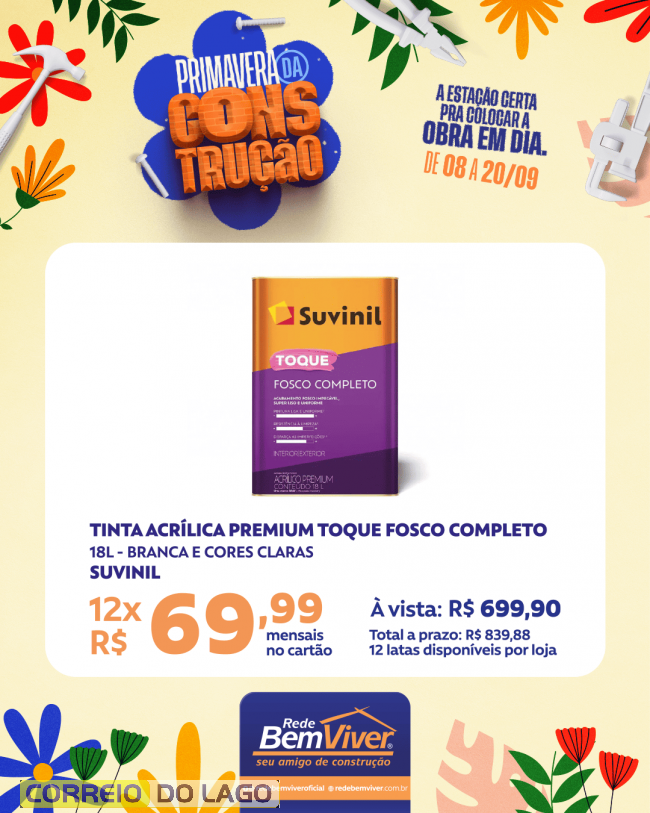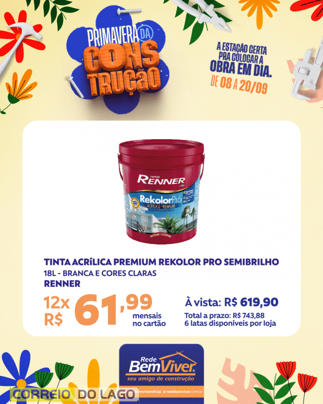 Entre os dias 8 e 20 de setembro, clientes podem aproveitar a Primavera da Construção do Ponto Forte – Rede Bem Viver com descontos em produtos e equipamentos para obras, reformas e melhorias na casa.