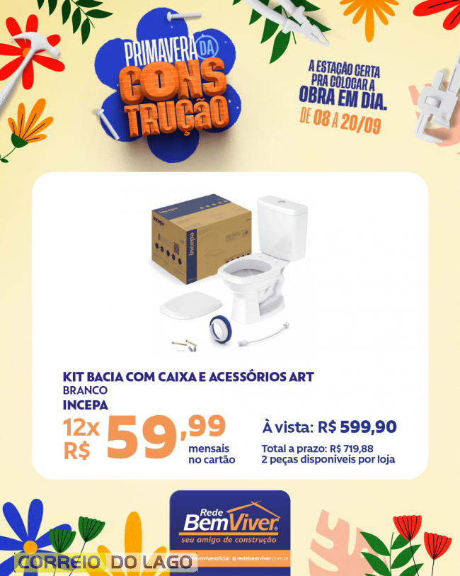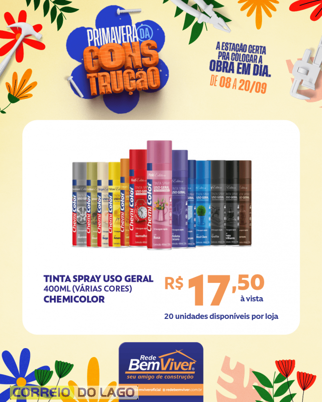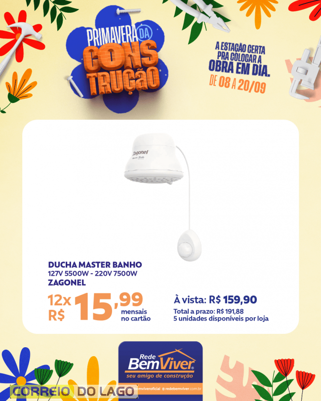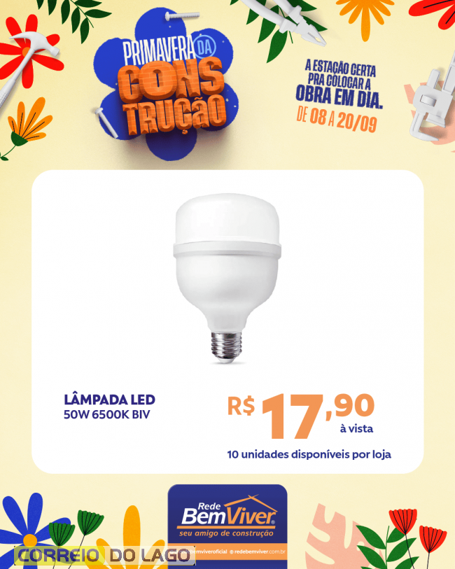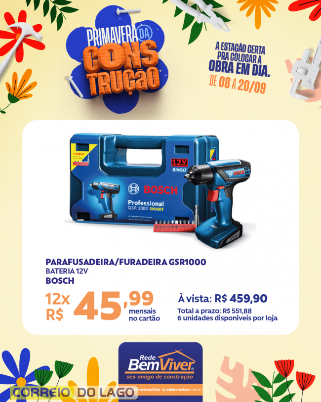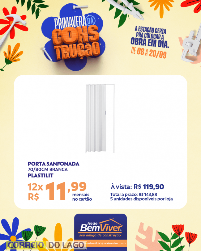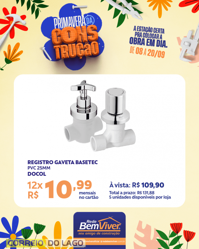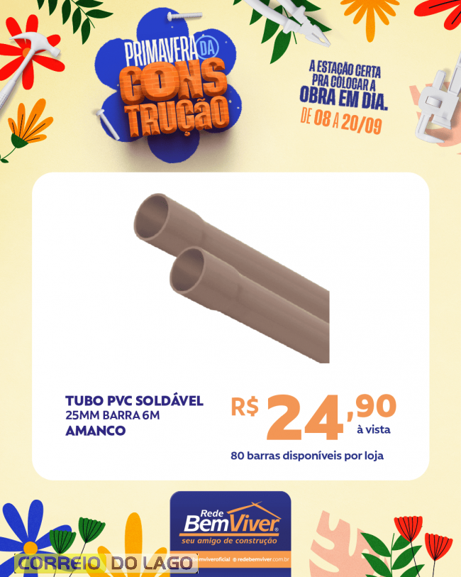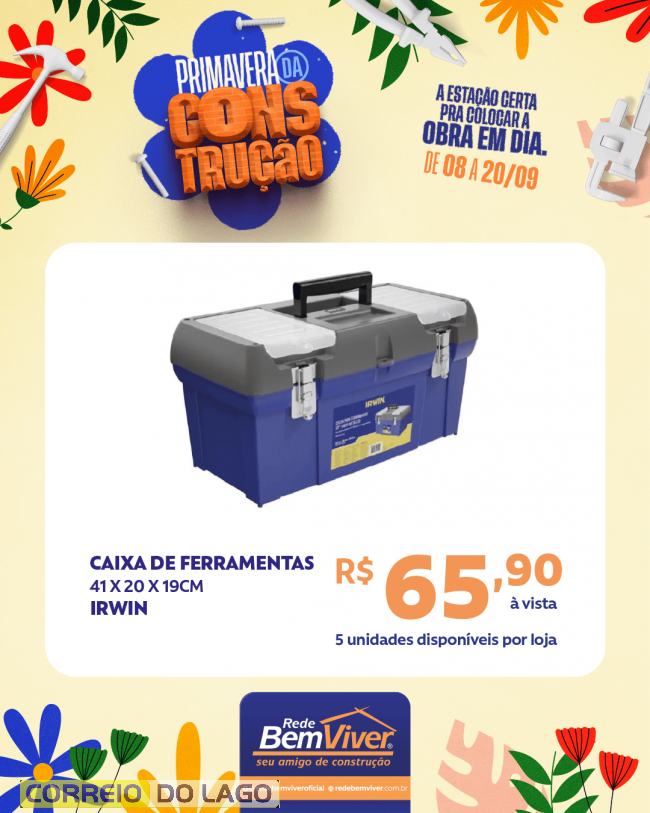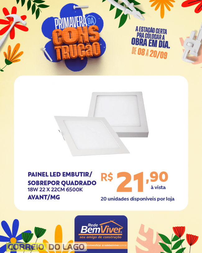 Entre os dias 8 e 20 de setembro, clientes podem aproveitar a Primavera da Construção do Ponto Forte – Rede Bem Viver com descontos em produtos e equipamentos para obras, reformas e melhorias na casa.