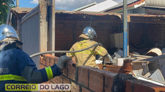 Ao chegarem ao local, as equipes constataram que as chamas atingiam uma edícula localizada nos fundos da residência. Conforme informações preliminares, o fogo teria iniciado após o proprietário, supostamente, queimar folhas de papel no local.