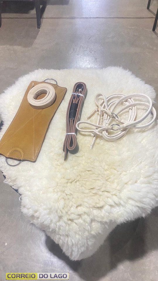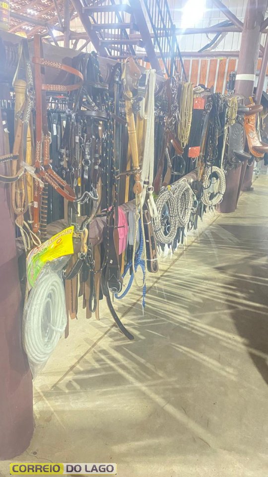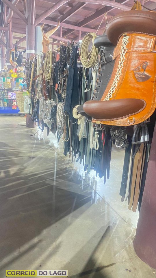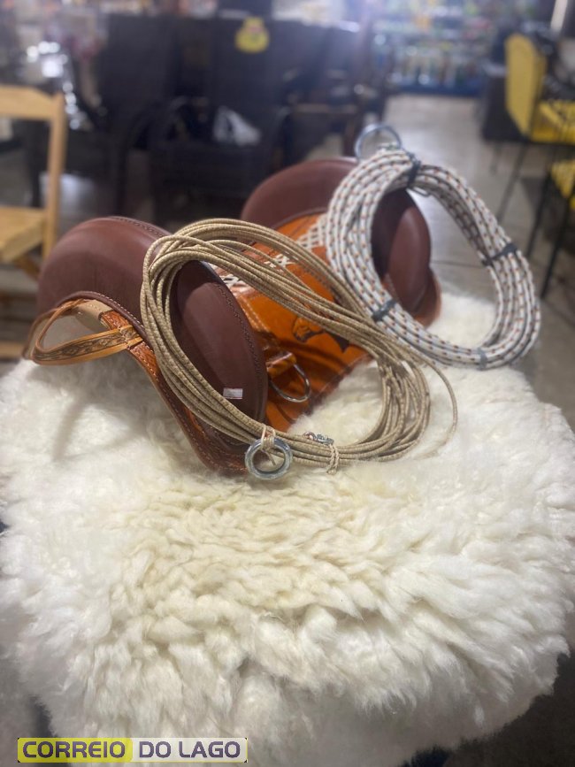 Entre os produtos estão os laços de nylon e também os laços profissionais chumbados, muito procurados por quem trabalha diretamente com o gado. Além disso, há uma grande variedade de tralhas para montaria.