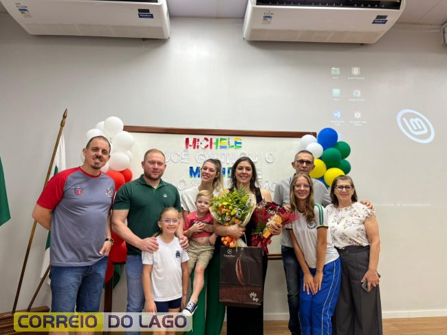 A manhã desta quarta-feira (04) foi marcada por emoção, abraços e muita saudade na Escola Municipal Teotônio Vilela, localizada no distrito de Equina Céu Azul, em Santa Helena. A professora santa-helenense Michele Varnier Polla, que participou do programa Ganhando o Mundo, retornou do intercâmbio no Canadá e foi recepcionada com uma calorosa homenagem preparada por alunos, colegas de trabalho e familiares.