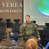 A Tenente Karina Kraulich, Comandante da Polícia Militar, enfatizou a relevância do trabalho interinstitucional. "Aqui a gente está todo mundo trabalhando, todo mundo com o mesmo objetivo, né, e assim, eu acho que se a gente quer realmente mudar alguma coisa, a gente começa pela informação, pela educação," disse a Tenente, reforçando o papel da PM no preventivo.