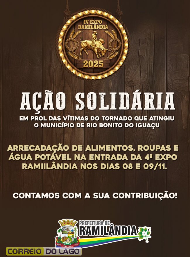 A iniciativa recolhe alimentos, roupas e água potável e acontece durante a 4ª Expo Ramilândia, nos dias 8 e 9 de novembro, na entrada do evento.