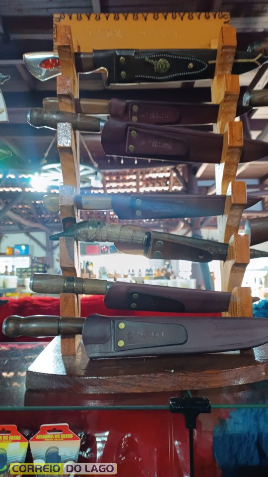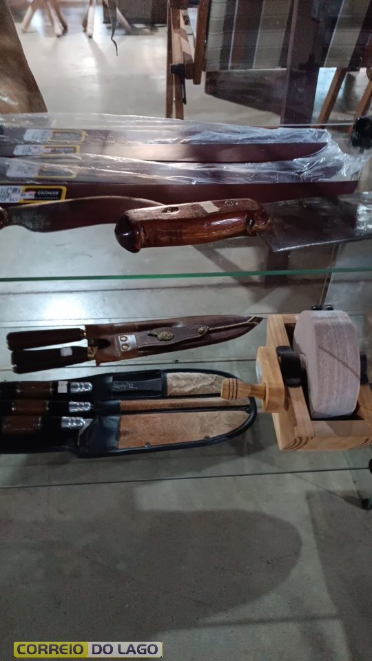 A loja oferece uma ampla variedade de produtos, incluindo facas, espetos, grelhas, churrasqueiras, artigos de decoração e uma completa linha gaúcha, com botas, chapéus, cintos de couro e carteiras.