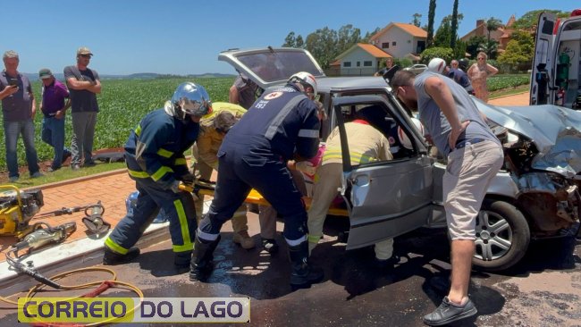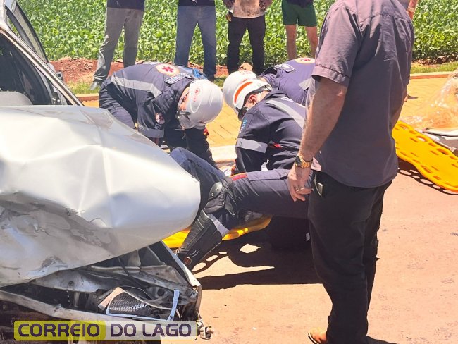Imagens mostram o momento dramático em que um casal de idosos foi retirado de um dos veículos envolvidos em um grave acidente de trânsito no distrito de Esquina Céu Azul, em Santa Helena. As vítimas ficaram presas mecanicamente no carro, e o Corpo de Bombeiros precisou forçar as duas portas para permitir que as equipes do SAMU tivessem acesso ao interior do veículo.