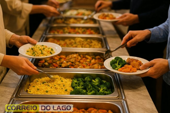 O cardápio deverá oferecer no mínimo duas proteínas, três tipos de saladas, molhos, arroz e feijão, além de respeitar as determinações específicas para sábado e domingo.