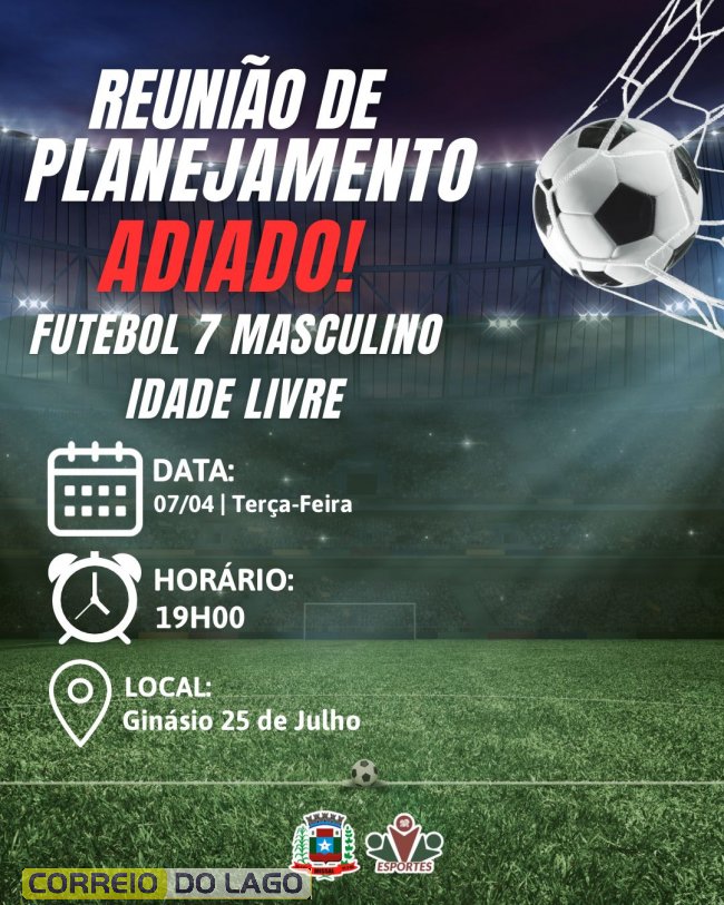 A reunião de Planejamento do Campeonato Municipal de Futebol 7 em Missal estava prevista para ocorrer nesta quinta-feira, 02 de abril. No entanto, em virtude de compromissos de dirigentes, principalmente com relação a quinta-feira Santa e também pelo fato de ser Ponto Facultativo, a data foi alterada.