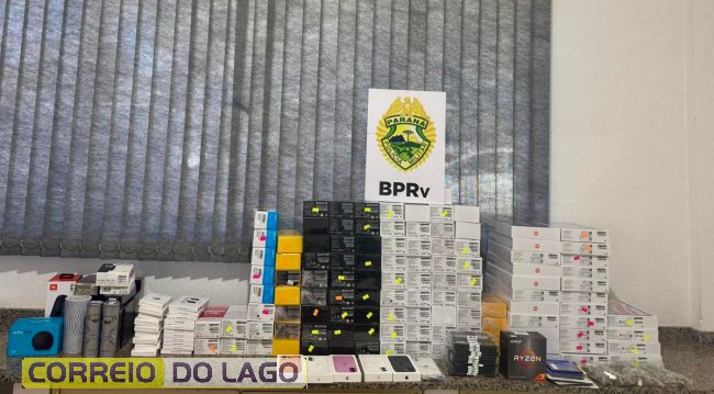 Entre os itens apreendidos estavam modelos recentes e de alto valor, como iPhone 12, iPhone 13, iPhone 16, iPhone 17 e 17 Pro, além de várias unidades de celulares Xiomi, Poco e Redmi. Também foram encontrados tablets, caixas de som, acessórios eletrônicos, memórias, processadores, relógios inteligentes e perfumes importados, todos provenientes do Paraguai.