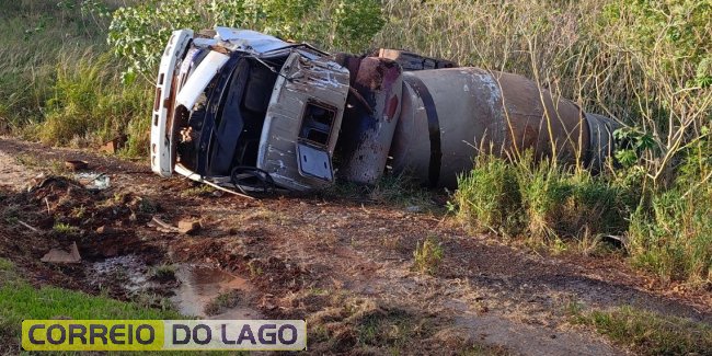 Na manhã desta terça-feira (07), por volta das 08h, a equipe do SAMU de Itaipulândia foi acionada para atender um acidente ocorrido no moro da Santa. Chegando ao local, a equipe deparou-se com um caminhão betoneira tombado e o motorista preso na cabine.
