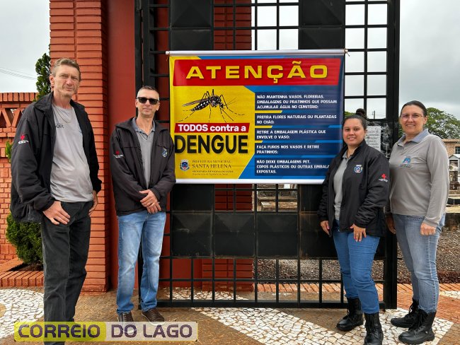 A equipe de combate à dengue de Santa Helena, coordenada por Ane Kaul, intensificou nesta quinta-feira (30) as ações de prevenção nos cemitérios municipais, em preparação para o Dia de Finados, que será neste domingo (02).