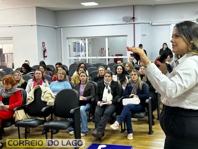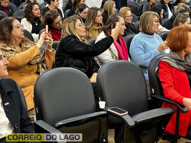 O evento contou com a presença do prefeito Dinho Maraskin, da vice-prefeita Fabrícia Bedendo, da presidente da ACISA Mulher de Santa Helena, Marcela Becker, do presidente da Caciopar, Reni Fernade Felipe, da diretora da Caciopar Mulher, Justina Thomas Metzner, e da palestrante Rosângela Angonese, especialista em Neurociência pela Faculdade de Medicina da Santa Casa de São Paulo.