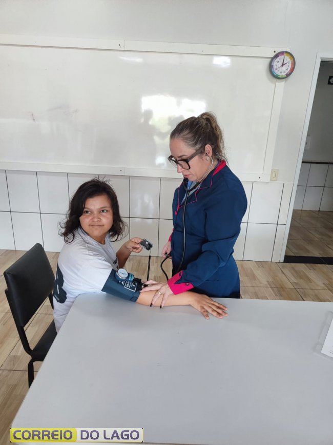 A equipe da ESF realiza atendimentos periódicos na escola, oferecendo suporte médico, de enfermagem e odontológico. Essa iniciativa visa atender às necessidades específicas dos alunos, que muitas vezes exigem cuidados diferenciados.