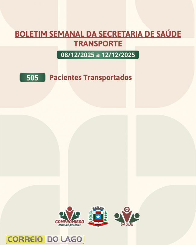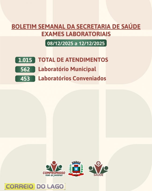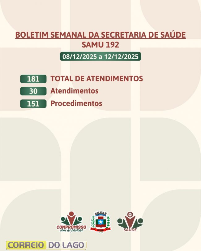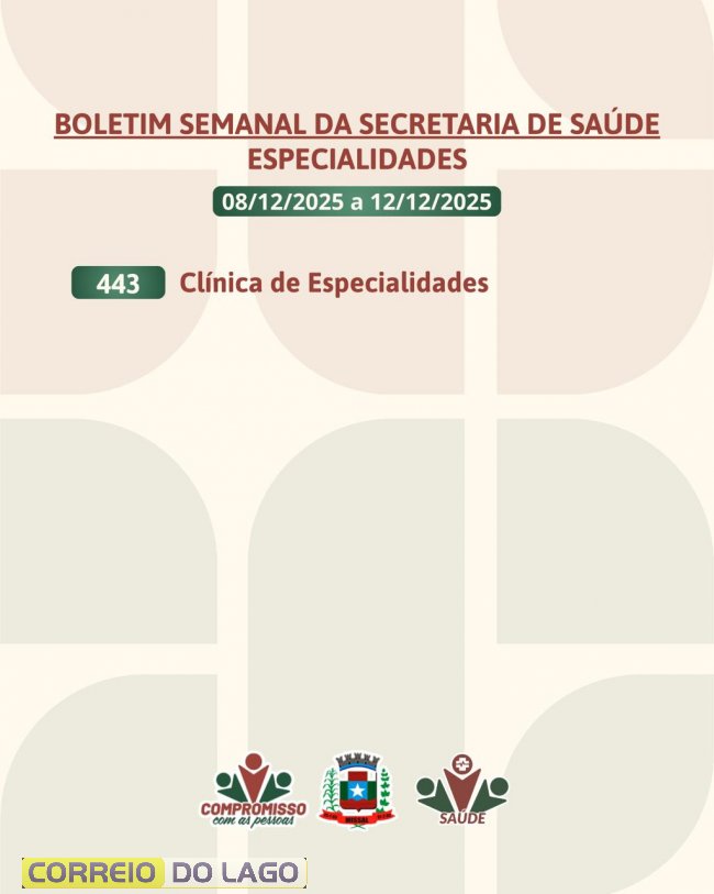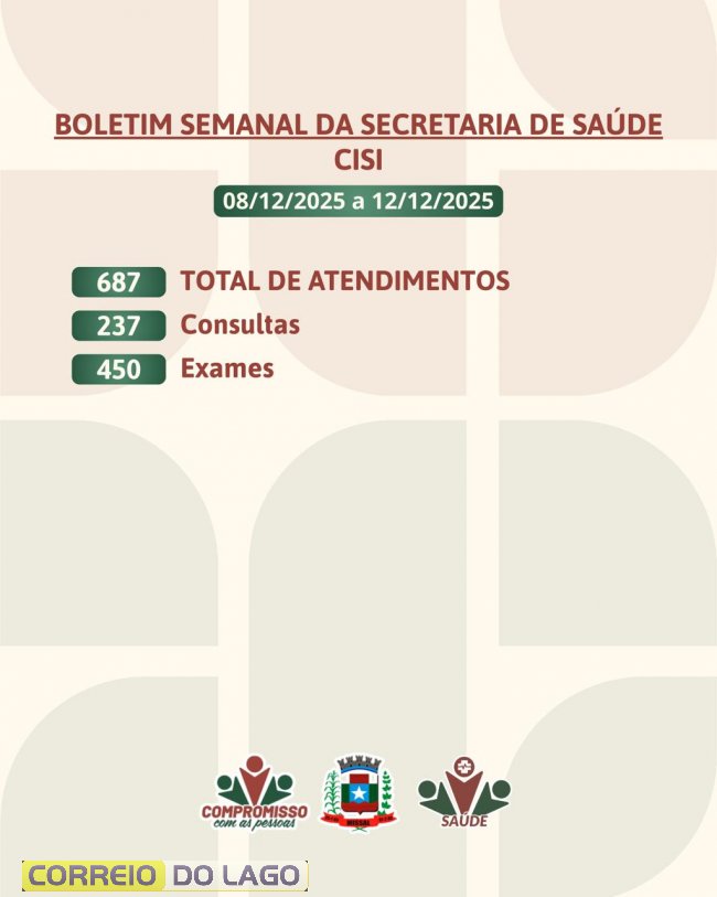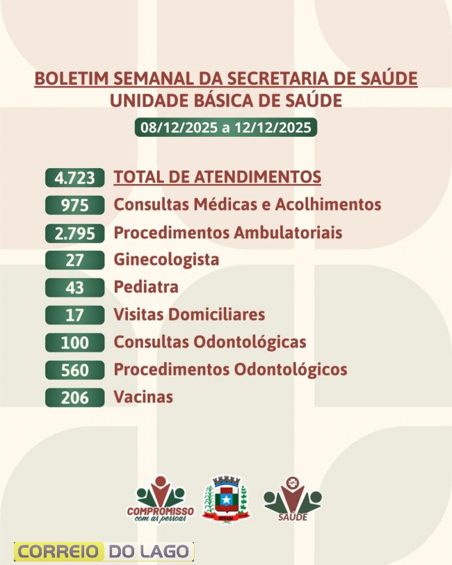 A Secretaria Municipal de Saúde divulgou o boletim semanal com os relatórios de atendimentos realizados nos diversos setores da pasta. O levantamento considera o período entre os dias 8 e 12 de dezembro, reunindo dados importantes sobre os serviços prestados à população.