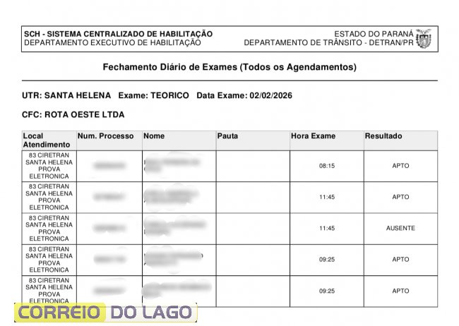 O CFC Rota Oeste, em Santa Helena, concluiu a segunda semana consecutiva com 100% de aprovação dos alunos no exame teórico. O resultado reforça o desempenho das turmas e o trabalho realizado ao longo do curso.
